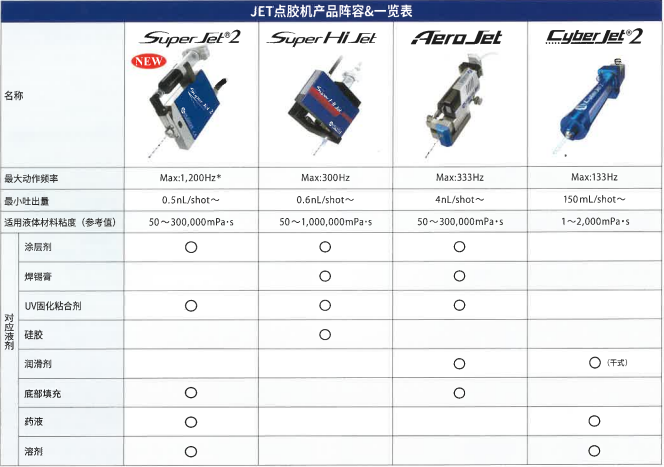 在遠(yuǎn)離工件的位置高精度地噴射液體,能實(shí)現(xiàn)從下方、橫截面、側(cè)面自由自在的涂布。在凹凸不平的基板和針嘴無法進(jìn)入的狹小區(qū)域的涂布大有用處。不受工件的翹曲和個體差異的影響進(jìn)行涂布。無需Z軸動作和間隙控制??梢猿咚俚奶幚砦⑿↑c(diǎn)的高精度穩(wěn)定涂布。可實(shí)現(xiàn)接觸式無法實(shí)現(xiàn)的涂布,有助于顯著提高生產(chǎn)效率的JET點(diǎn)膠機(jī)。
